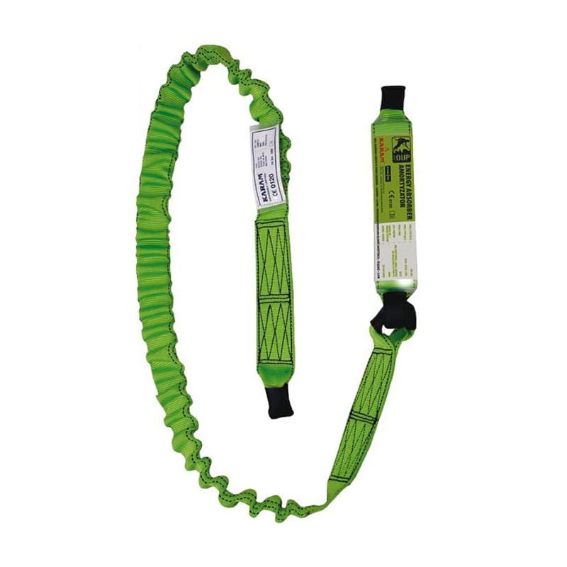 Amortyzator bezpieczeństwa o długości 2 metry ma szerokie zastosowanie w wielu branżach. Amortyzator bezpieczeństwa posiada elastyczny ściągacz taśmowy z pochłaniaczem energii. Taśma szerokości 44 mm wykonana jest z poliestru. Amortyzator bezpieczeństwa spełnia wymagania normy EN 355.