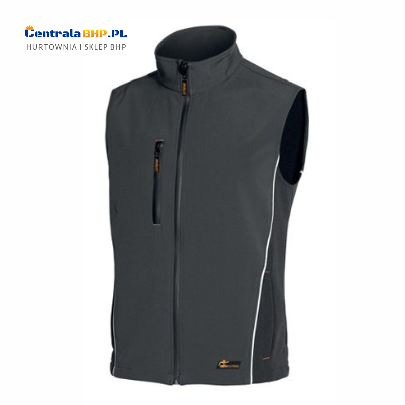 Zimowy męski bezrękawnik techniczny wykonany jest z wytrzymałego materiału softshell, który zapewnia doskonałą ochronę w chłodne dni. Tkanina softshell charakteryzuje się wysoką wodoodpornością oraz wiatroszczelnością a jednocześnie jest bardzo lekka i wytrzymała. Kamizelka ochronna techniczna łączy ze sobą styl sportowy z roboczym dzięki czemu oferuje atrakcyjny wygląd użytkownika w czasie pracy. Bezrękawnik męski roboczy posiada odblaskowe wstawki po bokach oraz oddychającą membranę. Dla zwiększenia wodoodporności kamizelki roboczej zamek błyskawiczny z przodu oraz kieszeń na piersi są klejone. Kamizelka męska techniczna posiada 5 wielofunkcyjnych kieszeni przydatnych do przechowywania rzeczy używanych w czasie pracy. Istnieje możliwość wykonania nadruku reklamowego na bezrękawniku Industrial Starter.