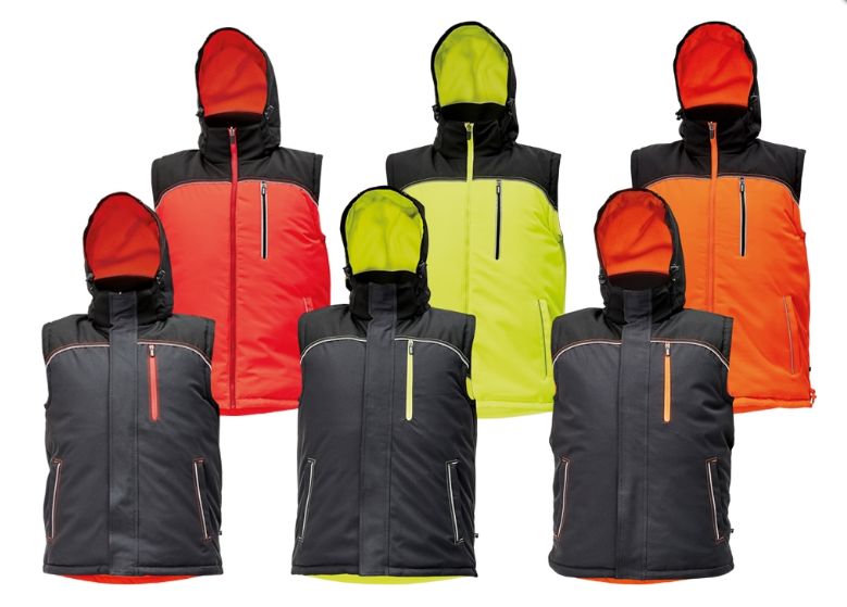 Bezrękawnik roboczy męski Knoxfield posiada bardzo praktyczną funkcję dwustronnego użytkowania. Jedna strona kamizelki roboczej odblaskowej Cerva jest wykonana z materiału o wysokiej widoczności natomiast druga strona jest w ciemnym antracytowym kolorze. Tył i kieszenie kamizelki ochronnej męskiej obszyte odblaskowymi lamówkami. Bezrękawnik ostrzegawczy dwustronny posiada odpinany kaptur dwustronny ozdobiony kontrastowymi przeszyciami. Kamizelka robocza dwustronna posiada możliwość regulacji obwodu u dołu za pomocą sznurka.
