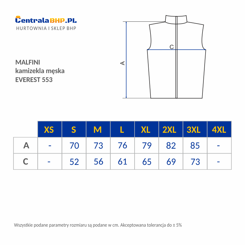 Lekka kamizelka męska wykonana z materiałów które zapewniają ciepło w chłodne dni. Bezrękawnik ocieplany posiada dwie kieszenie boczne zapinane na zamek błyskawiczny. Bezrękawnik roboczy męski zapinany jest na zamek z odwróconym suwakiem na całej długości z ochroną podbródka. Komfort użytkowania kamizelki ochronnej zapewnia regulacja kołnierzyka za pomocą elastycznego paska. Pikowany bezrękawnik męski jest bardzo praktyczny zarówno w pracy jak i w czasie wolnym.