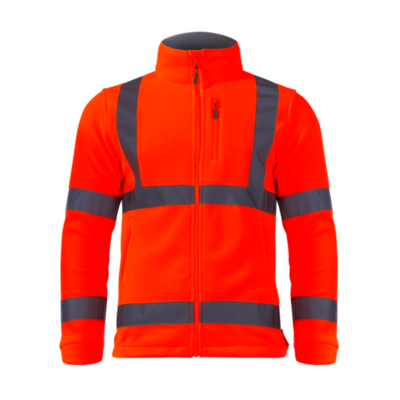 Ostrzegawcza bluza polarowa wykonana z wysokiej jakości poliestru o grubości 300g. Polar męski Lahti-Pro posiada pasy odblaskowe które w połączeniu z materiałem ostrzegawczym zapewnia wysoką klasę widoczności. Dzięki temu, iż materiał jest krótko strzyżony i dwustronnie szczotkowany polar ochronny jest miękki w dotyku i nie mechaci się. Bluza polar robocza zapinana jest na suwak z osłoną oraz posiada trzy kieszenie również zapinane na suwak. Komfort użytkowania polaru męskiego Lahti Pro zapewnia regulacja szerokości za pomocą specjalnego ściągacza z blokadą.