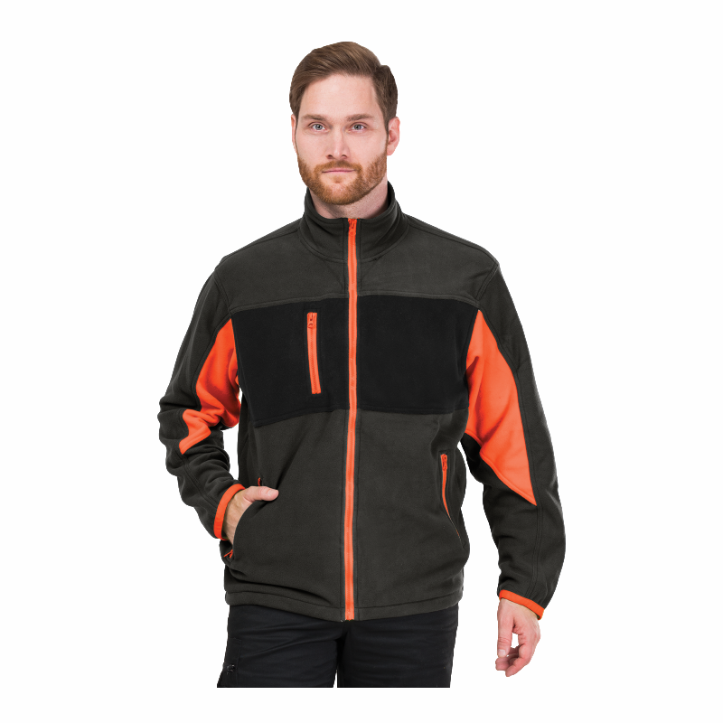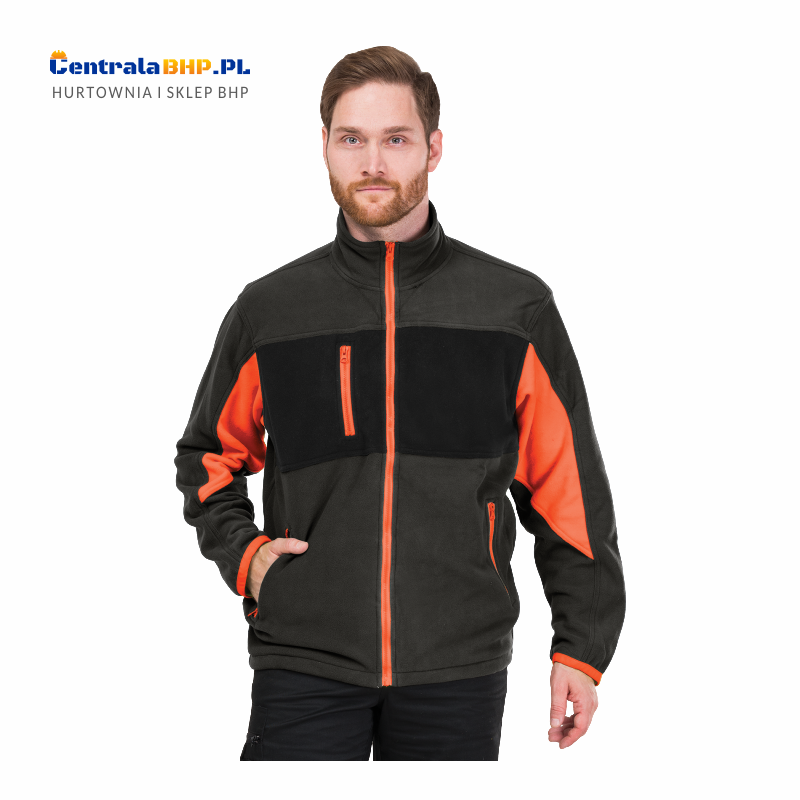 Bluza polarowa robocza, trójkolorowa, bluza ochronna, ciemnoszaro-czarno-pomarańczowy