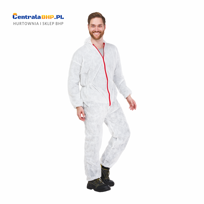 Kombinezon malarski ochronny wykonany jest z polipropylenu, który jest odporny na działanie kwasów, zasad i soli. Kombinezon roboczy wyposażony jest w stały kaptur, który dodatkowo chroni naszą głowę w czasie pracy. Kombinezon malarski posiada wygodne zapięcie na suwak. Brzegi rękawów oraz nogawek kombinezonu wykończone są gumkami ściągającymi, dzięki czemu kombinezon zapewnia większą szczelność. Komfort użytkowania kombinezonu malarskiego ochronnego zapewnia marszczenie w pasie, które ułatwia marszczenie do sylwetki.