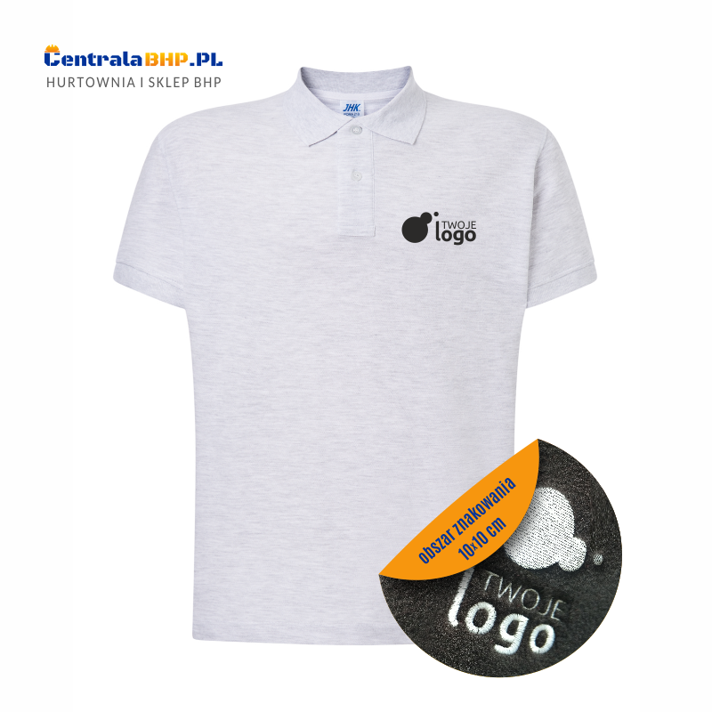 Koszulka polo JHK 200g męska robocza ochronna ash melange z haftowanym logo