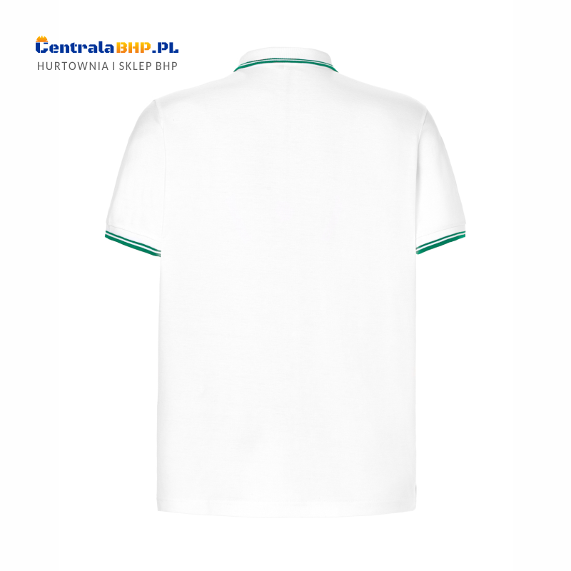 Koszulka polo męska robocza ochronna z haftowanym logo JHK 200g w-contrast white / kelly green