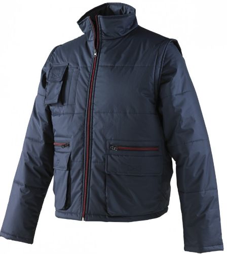 Bardzo funkcjonalna kurtka męska robocza Square w kolorze granatowym. Kurtka męska ochronna ocieplana wyposażona jest w bardzo dużą ilość funkcyjnych kieszeni: dwie duże zewnętrzne kieszenie, dwie zapinane na suwak, kieszeń na telefon i dwie kieszonki na długopisy. Kurtka męska robocza posiada wyjątkowy walor jakim są odpinane rękawy dzięki czemu można zrobić funkcyjny bezrękawnik. Wysoki kołnierz kurtki męskiej puchowej Issa doskonale chroni przed wiatrem i deszczem.