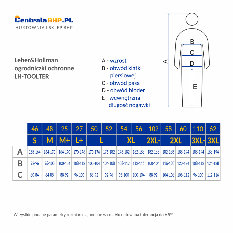 - dostępne rozmiary: 48, 50, 52, 54, 56, 58, 60, 62