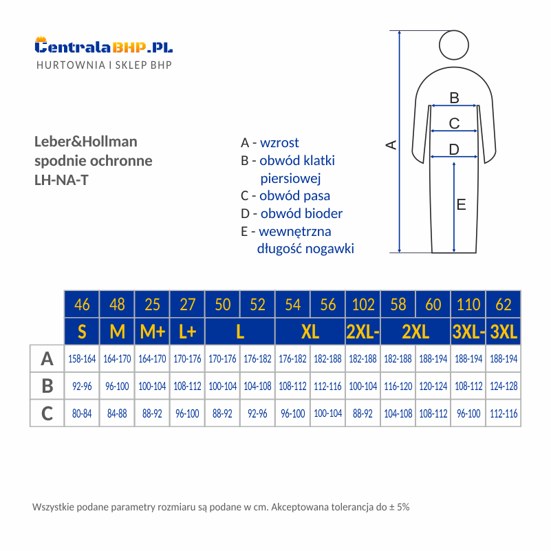 Dostępne rozmiary: 46, 48, 50, 52, 54, 58, 60, 62