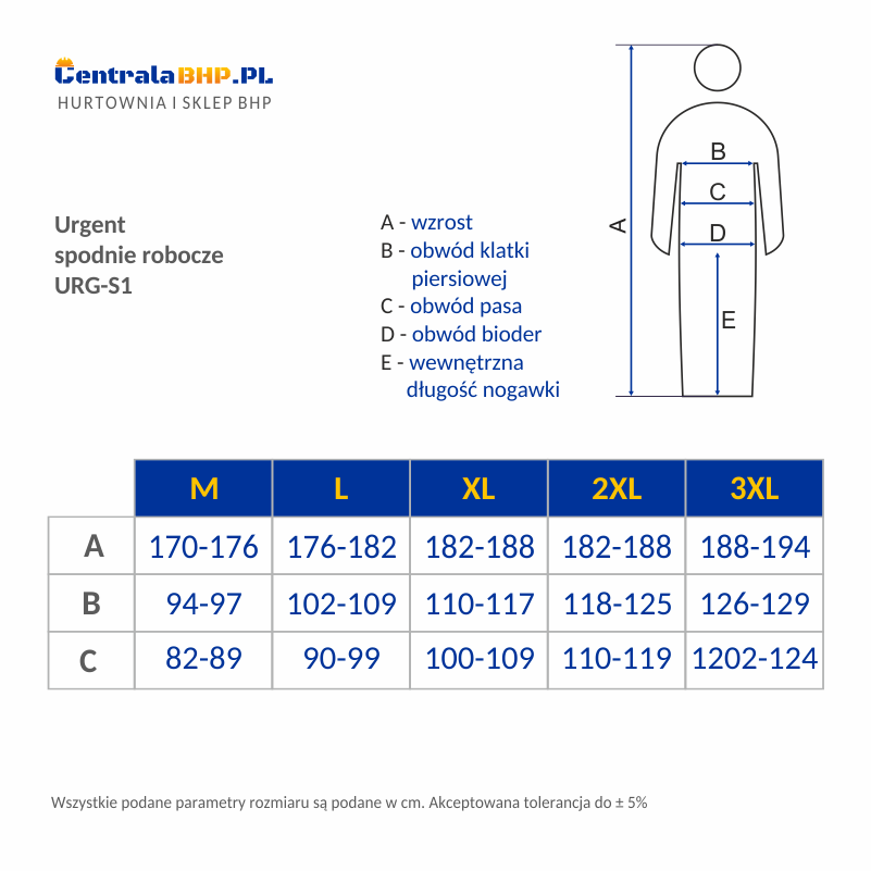 Wygodne spodnie robocze wykonane są z bawełny z lekką domieszką elastanu który zapewnia lepszy komfort użytkowania. Spodnie męskie ochronne wykonane są w niebieskim kolorze, który sprawdza się niemal w każdej branży. Spodnie robocze do pasa wyposażone są w dużą ilość praktycznych kieszeni potrzebnych w pracy. Specjalne kieszenie na kolanach spodni roboczych Urgent umożliwiają włożenie nakolanników ochronnych dla dodatkowej ochrony kolan. Spodnie męskie do pasa dostępne są w wielu rozmiarach. Spodnie robocze bawełniane z dodatkiem elastanu to nowoczesna linia odzieży roboczej.