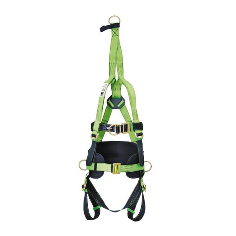 Szelki bezpieczeństwa wyposażone są w jeden pierścień w kształcie litery D w górnej części nad głową wykonany ze stali o dużej wytrzymałości, dodatkowe dwa pierścienie piersiowy i grzbietowy w kształcie litery D wykonane są ze stali o dużej wytrzymałości. Szelki bezpieczeństwa wyposażone są w regulowane pasy na ramionach w obrębie ud i na klatce piersiowej. Taśma szerokości 44 mm wykonana jest z poliestru. Szycie szelek bezpieczeństwa wykonane jest czarnymi nićmi z poliamidu, które są odporne na rozciąganie.