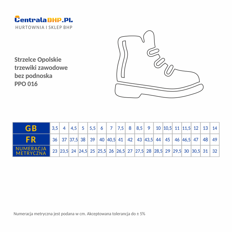 Trzewiki zawodowe bez podnoska.